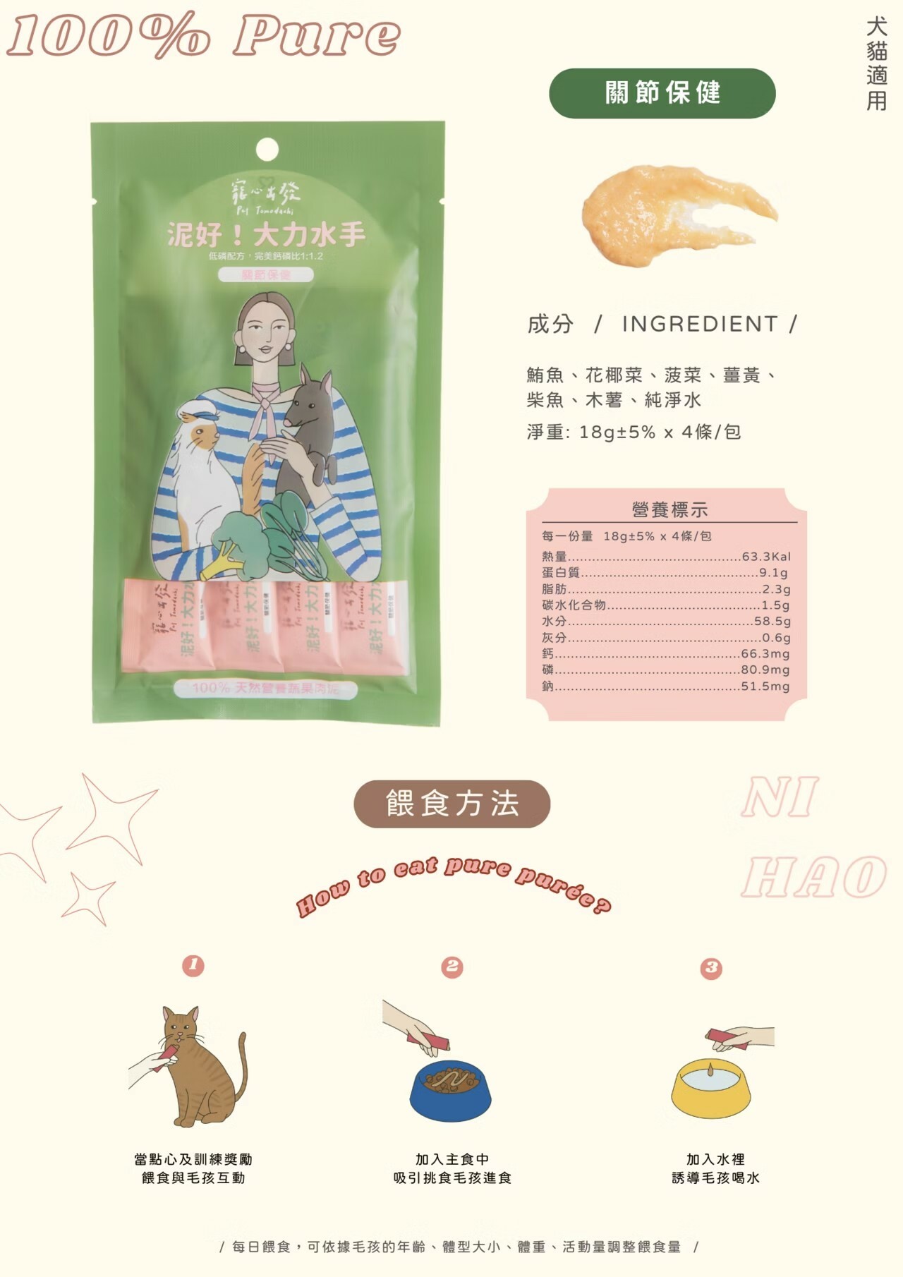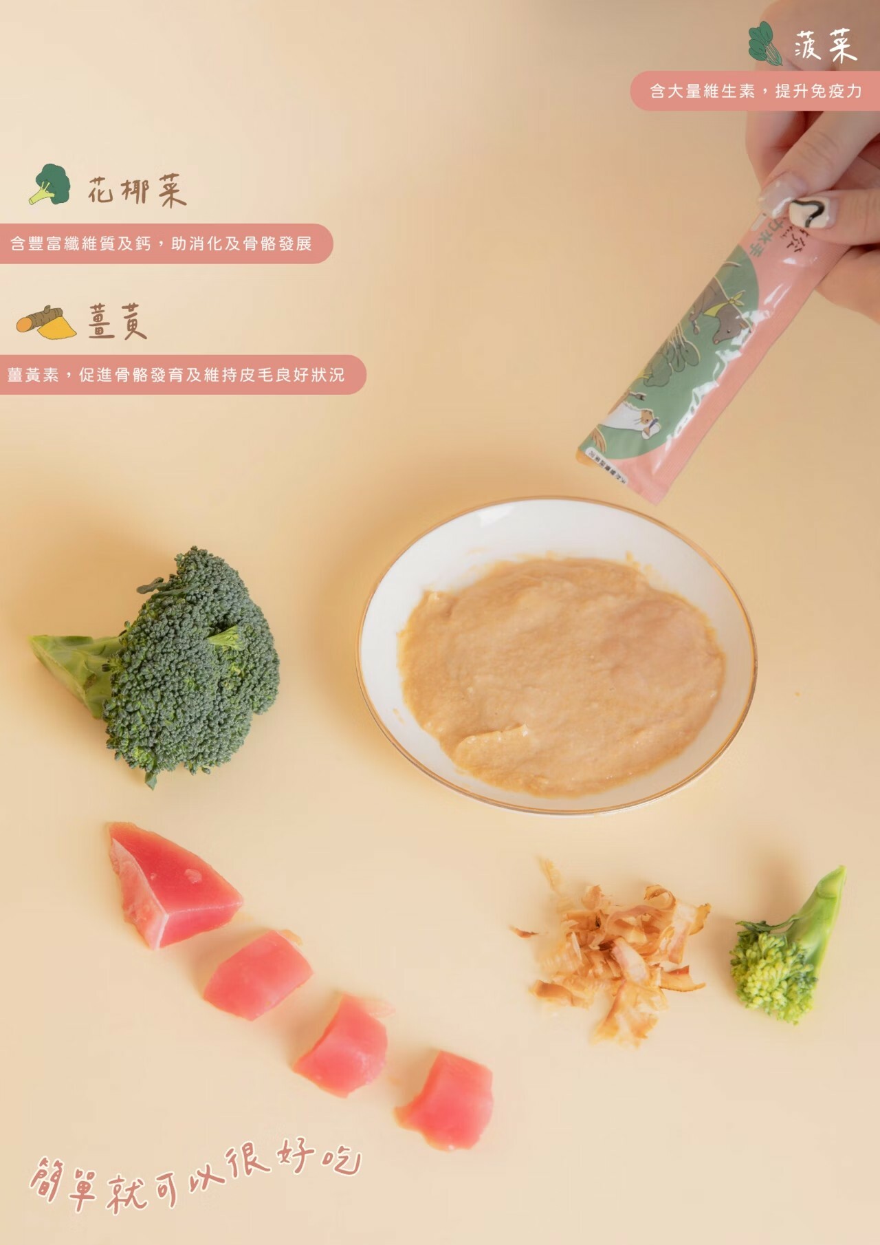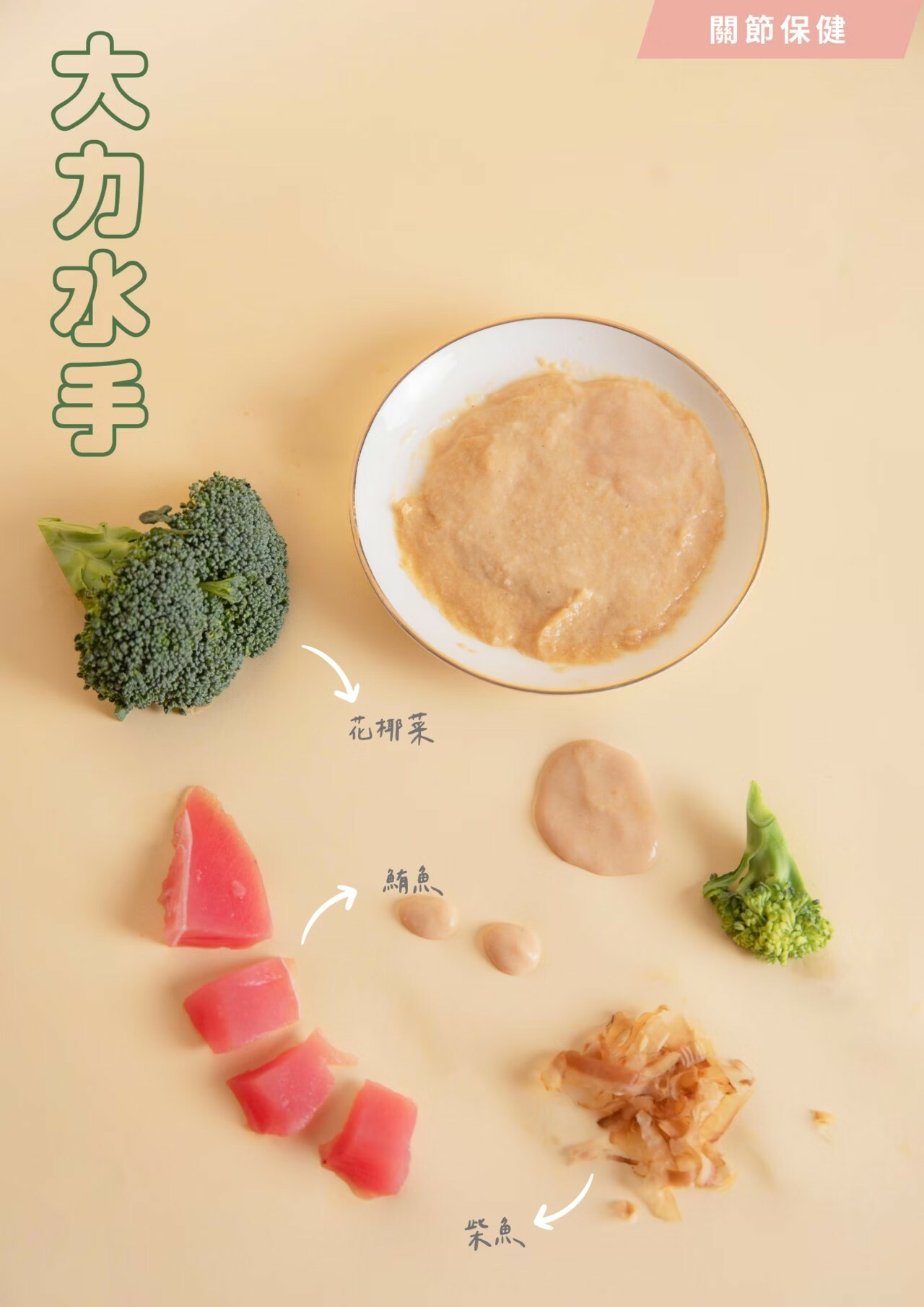 成分: 鮪魚、花椰菜、菠菜、薑黃、柴魚、木薯、純淨水