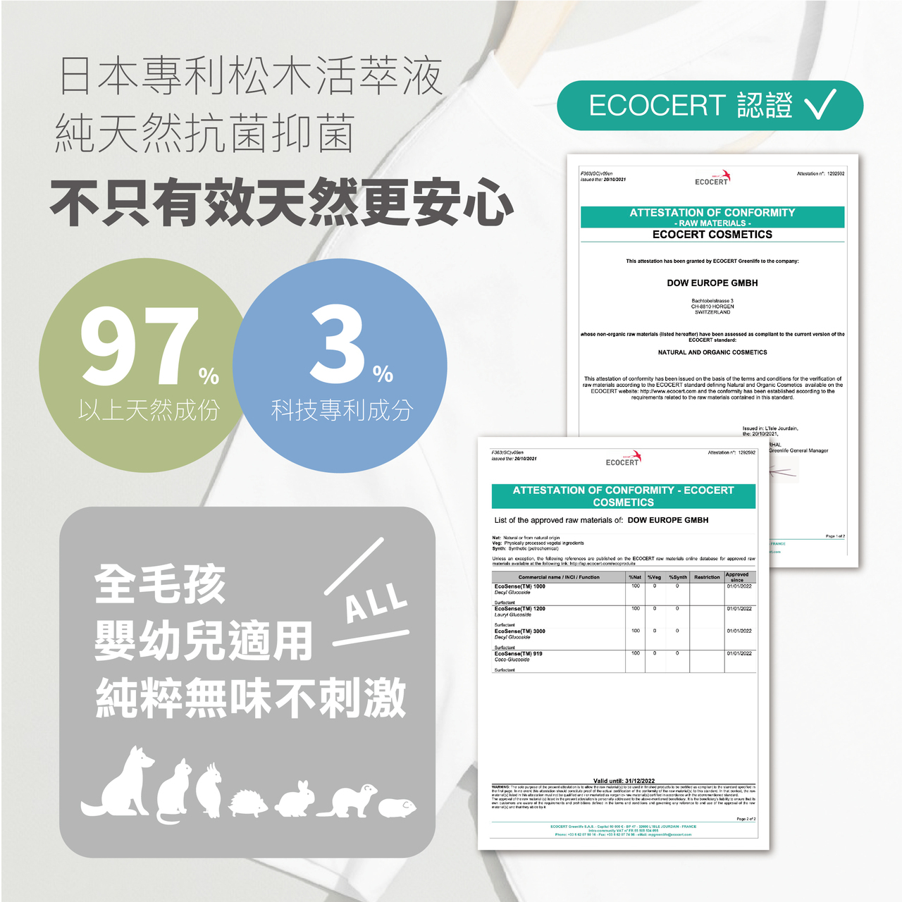 成分|日本專利松木活萃液、純水、蛋白酵素、椰子油起泡劑、植物性介面活性劑(ECOCERT認證)
